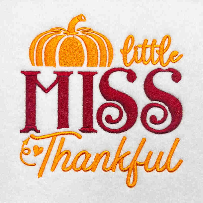 Embroidery Design: Little Miss Thankful – 4.52w x 4.83h