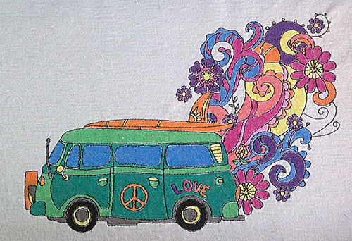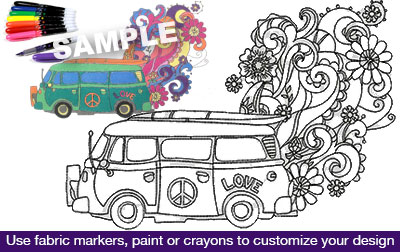 magic, bus, coloring, tee, love, hippie, peace, embellishment, floral, flowers, 60s, stitch n paint, paint, stitch and paint, stitch and color, Magic Bus Coloring Tee, color, colors, colorful, design, decoration, decorative,