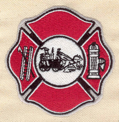 Embroidery Design: Maltese cross with vintage fire truck 3.15w X 3.16h