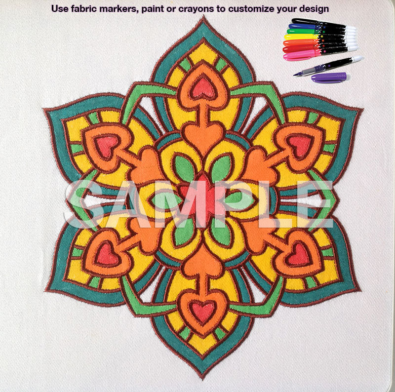 Explore this mesmerizing pattern with this sew and color ITH mandala design! First, stitch the complex outline on your machine, then unleash your creativity by adding custom colors with fabric paints or markers. It’s a wonderful way to craft a unique decorative piece for your bags, clothing, or home décor.