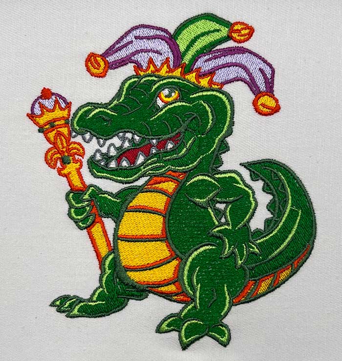 Embroidery Design: Mardi Gras Gator – 3 sizes