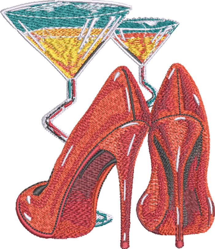 Embroidery Design: Martini and Shoes 3 sizes