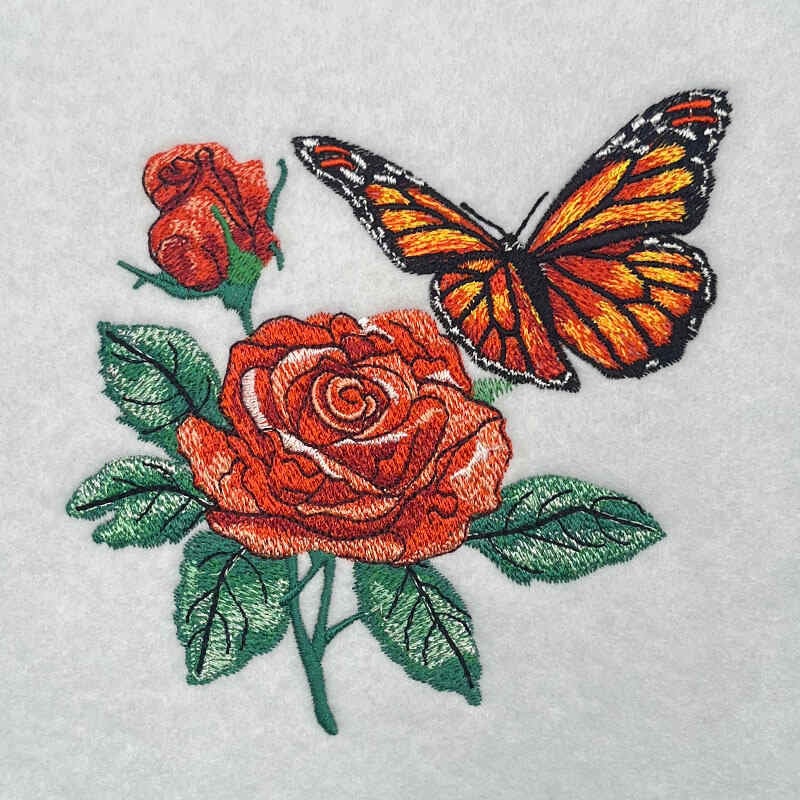 Embroidery Design: Monarch on Roses 2 – 5.00w x 4.90h