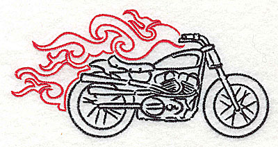 Embroidery Design: Motorcycle I with flames 2 Sizes