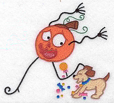 Embroidery Design: Mr. Pumpkinhead being chased by dog 2 sizes