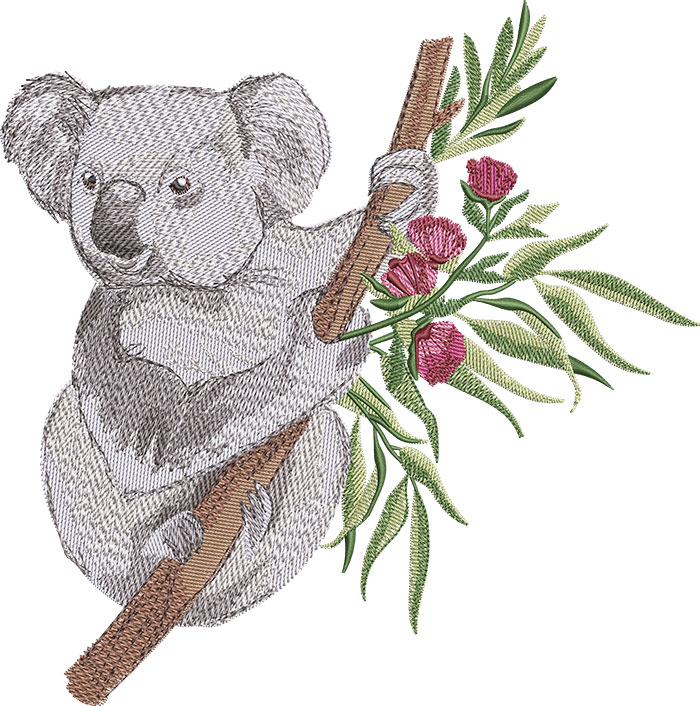 Premium Embroidery Design: Outback Deluxe Koala On Tree Branch 3 sizes