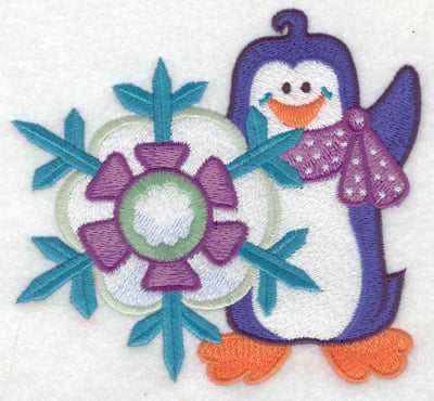 Embroidery Design: Penguin with snowflake 2 Sizes