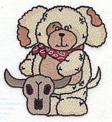 Embroidery Design: Pudgy Puppy with steer skull 2 Sizes