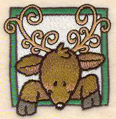 Embroidery Design: Reindeer head in frame 2 Sizes