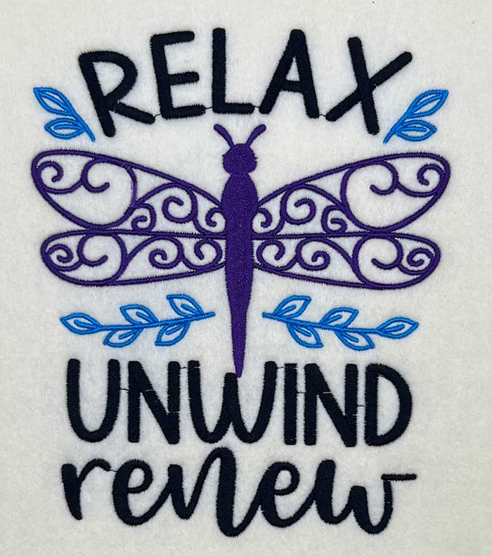Embroidery Design: Relax Unwind Renew