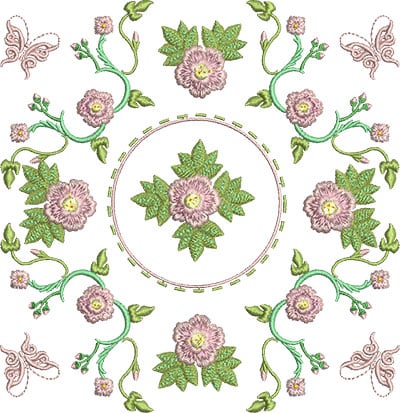 Embroidery Design: Rose and Butterfly Block 7 7.04w X 7.27h