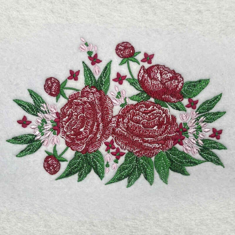 Embroidery Design: Roses and Peonies 4 – 6.98w x 4.81h