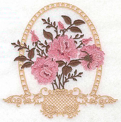 Embroidery Design: Roses in Victorian basket 4.92w X 4.98h