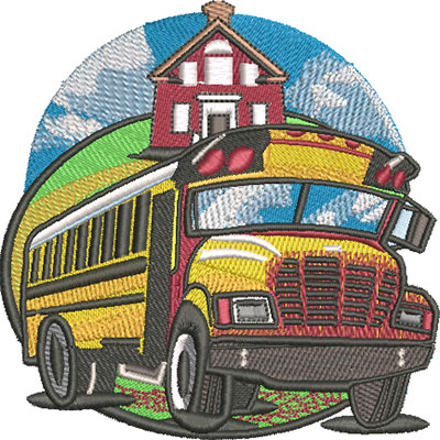 Embroidery Design: School Bus Leaving School 3 Sizes
