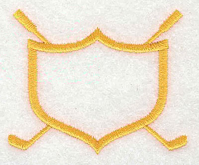 Embroidery Design: Shield with crossed golf clubs 2.50w X 2.06h