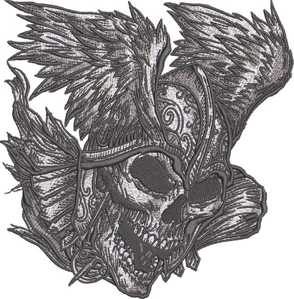 Embroidery Design: Skull with winged helmet 3 sizes