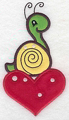 Embroidery Design: Snail on heart appliques 3.35w X 6.10h
