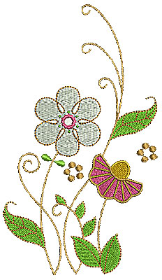 Embroidery Design: Summer flowers with swirls 1 3.94w X 6.91h