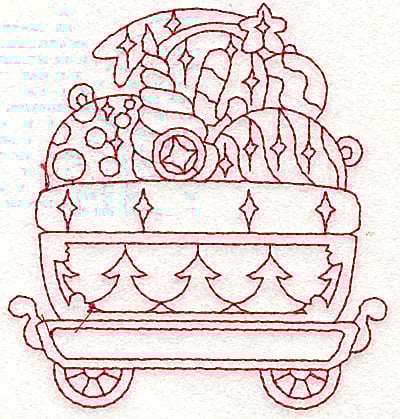 Embroidery Design: Train with ornaments redwork 3.45w X 3.73h