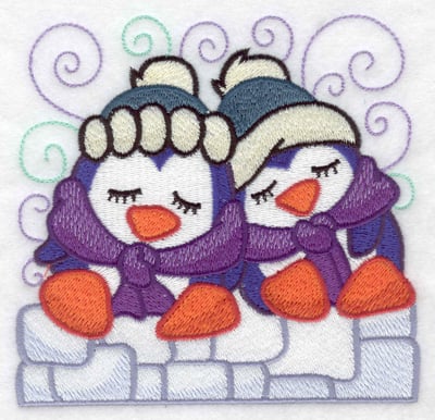 Embroidery Design: Two penguins sleeeping 2 Sizes