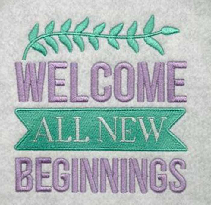Embroidery Design: Welcome All New Beginnings – 4.41 x 4.48