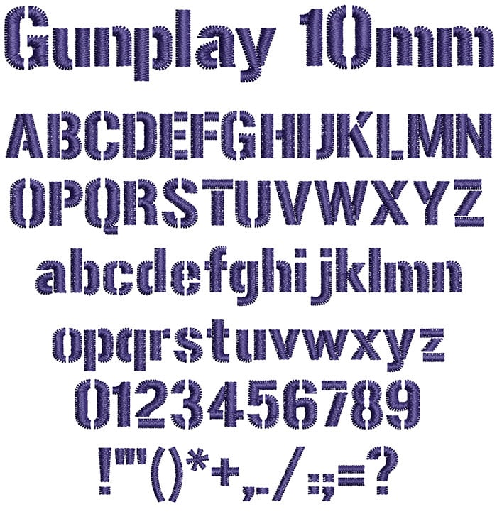 ESA Embroidery Font: Gunplay 10mm