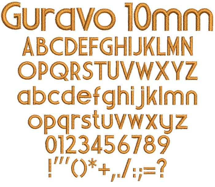 ESA Embroidery Font: Guravo 10mm