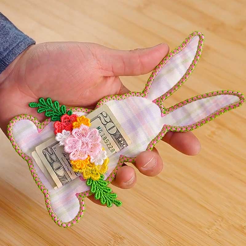 This adorable and practical design is created entirely in your embroidery hoop, making it a fun and satisfying project from start to finish. Perfect for Easter gatherings, spring celebrations, baby showers, or everyday table décor, the Bunny Utensil Holder adds a charming handmade touch to each place setting. It’s ideal for holding silverware, napkins, treats, small goodies — and even money for a fun and creative gift presentation!