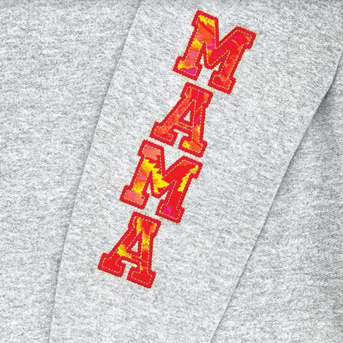 Show the world you’re proud to be a Mama with this super cute MAMA text appliqué. This version will look great on a sleeve/
