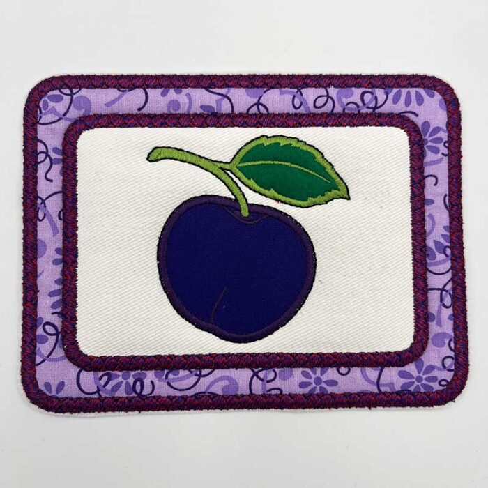 Fruit Mug Rug, In the Hoop project, home decor, coaster, plum, fruit