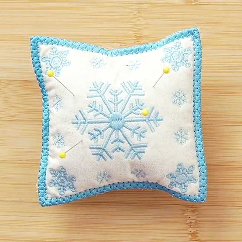 This wintery pin pillow is perfect for adding a handmade touch to your sewing space. Featuring a charming snowflake design and a functional cushion, it is ideal for holding pins, needles, or small sewing tools. Quick and fun to stitch, this project is perfect for all skill levels and makes a thoughtful, personalized gift or a festive addition to your winter décor.