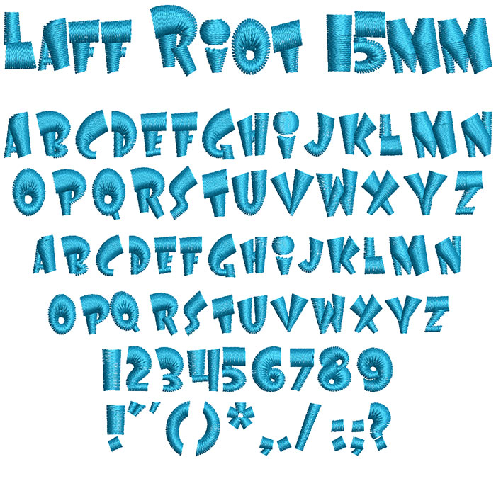 ESA Embroidery Font: Laff Riot 15mm