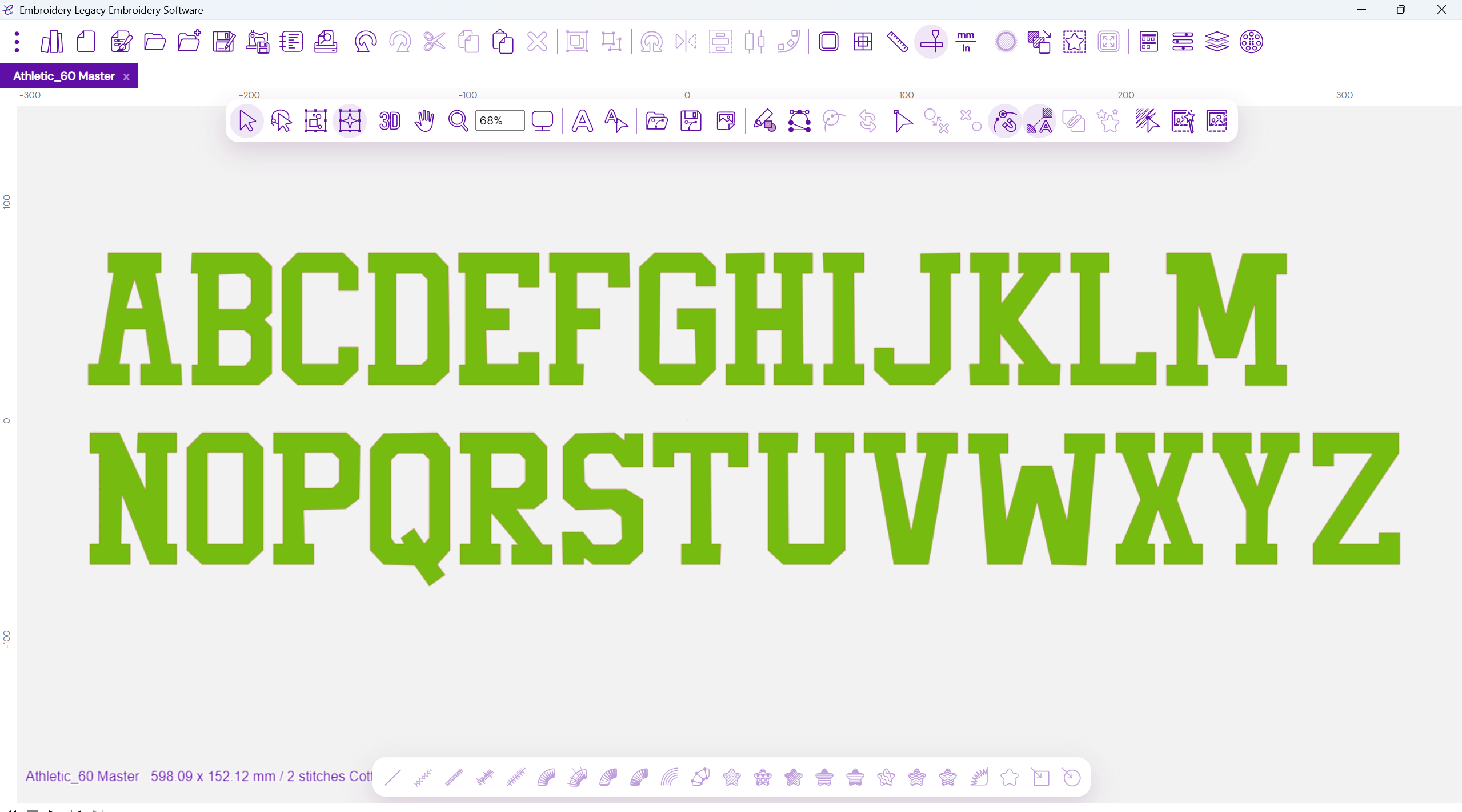 Athletic 60 Creative Booster comes in an .JDX file format. In your Embroidery Legacy software click the Open icon, then navigate to where you have the Booster saved on your computer