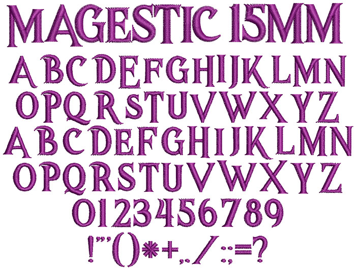 ESA Embroidery Font: Magestic 15mm