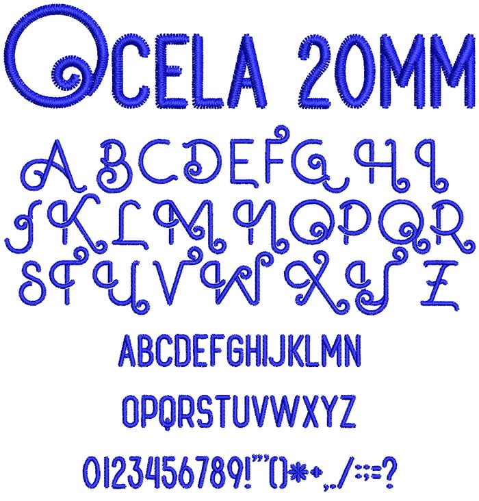 ESA Embroidery Font: Ocela 20mm