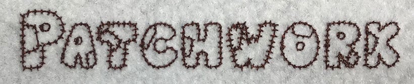 Patchwork 15mm font comes in an .ESA file format. It loads directly into your Hatch or Wilcom E series software to be used as a keyboard font. For best results, we suggest that you keep the size of this particular font at 15mm or greater.