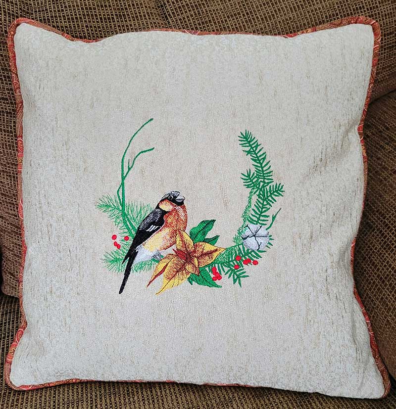 Premium Embroidery Design: Bullfinch Wreath – 3 sizes