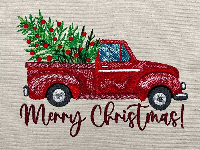 Premium Embroidery Design: Christmas Truck – 2 sizes