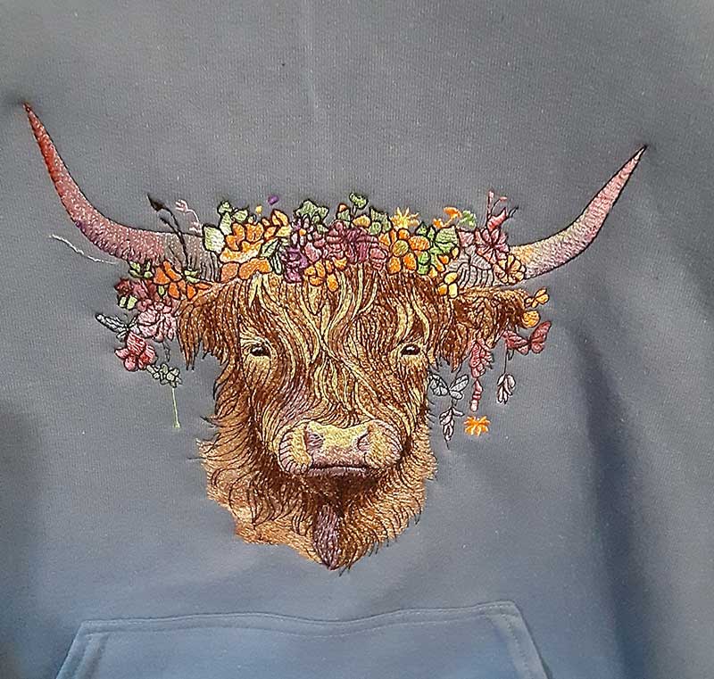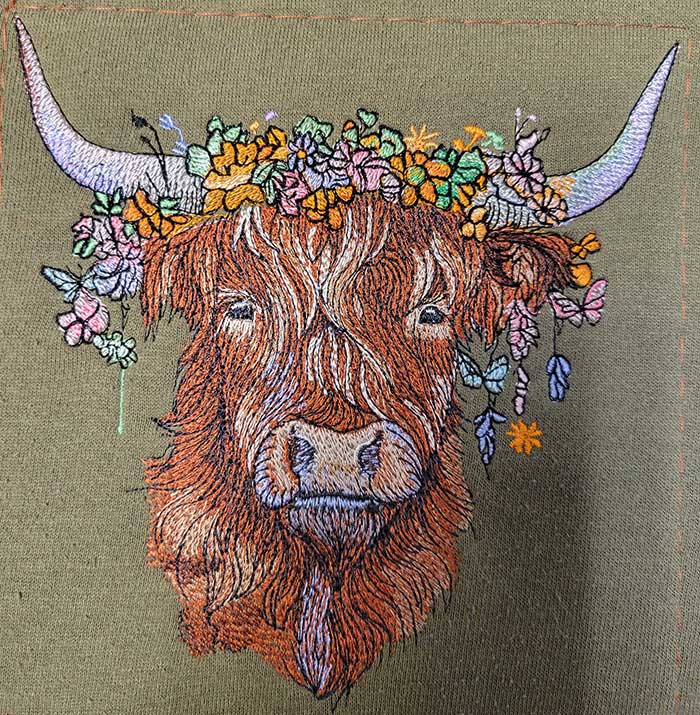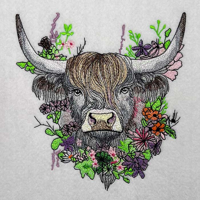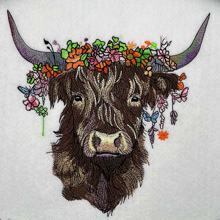 Premium Embroidery Design: Highland Cow 1 – 6 sizes