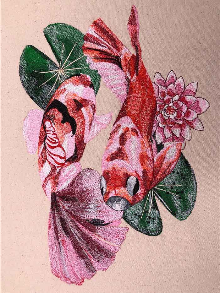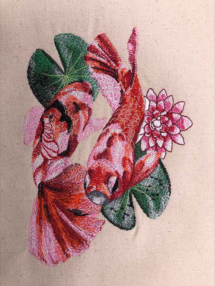 Premium Embroidery Design: Okinawa Koi Fish 3 sizes
