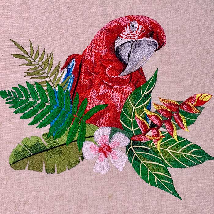 Premium Embroidery Design: Rainforest Parrot with Flowers 3 sizes