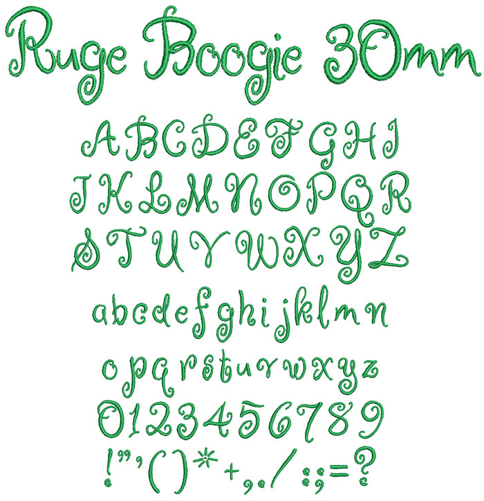 ESA Embroidery Font: Ruge Boogie 30mm
